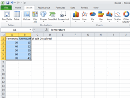 Label the axes (Temperature (degrees C)) and (amount of salt dissolved (g))