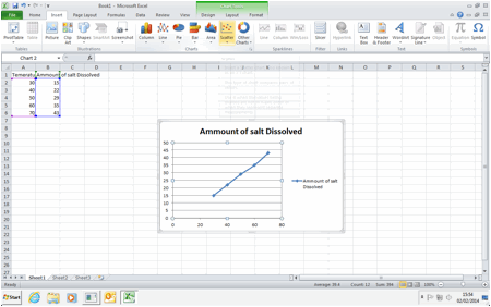 This can be done by clicking the scatter graph in the ribbon once your data has been set up.