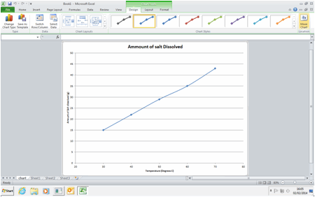 You are now going to make this scatter graph look great by doing the following. (hint everything for this is now in the chart options (highlighted green in the ribbon))